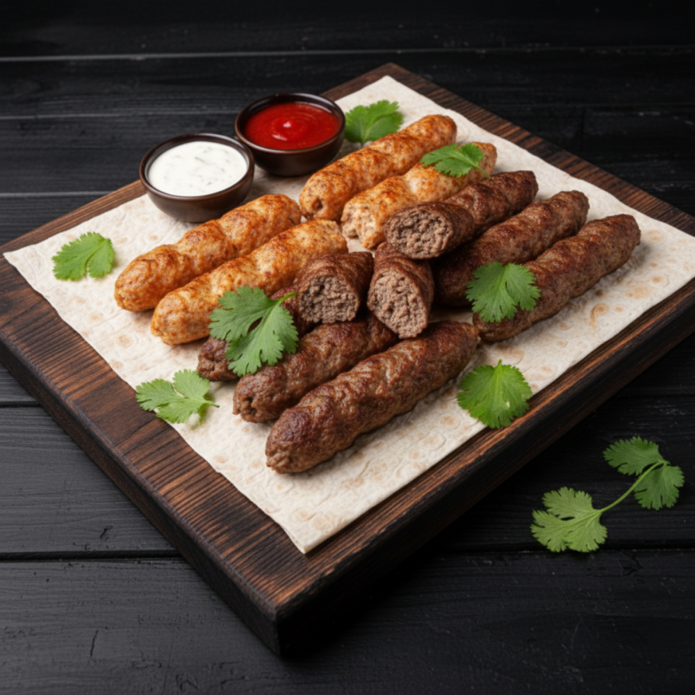 Люля кур.- 3 шт Люля свиной- 3 шт тар-тар-4 лаваш-6 кусков Сеты не проходят по акциям и промо-кодам. Баллы с сетов не списываются