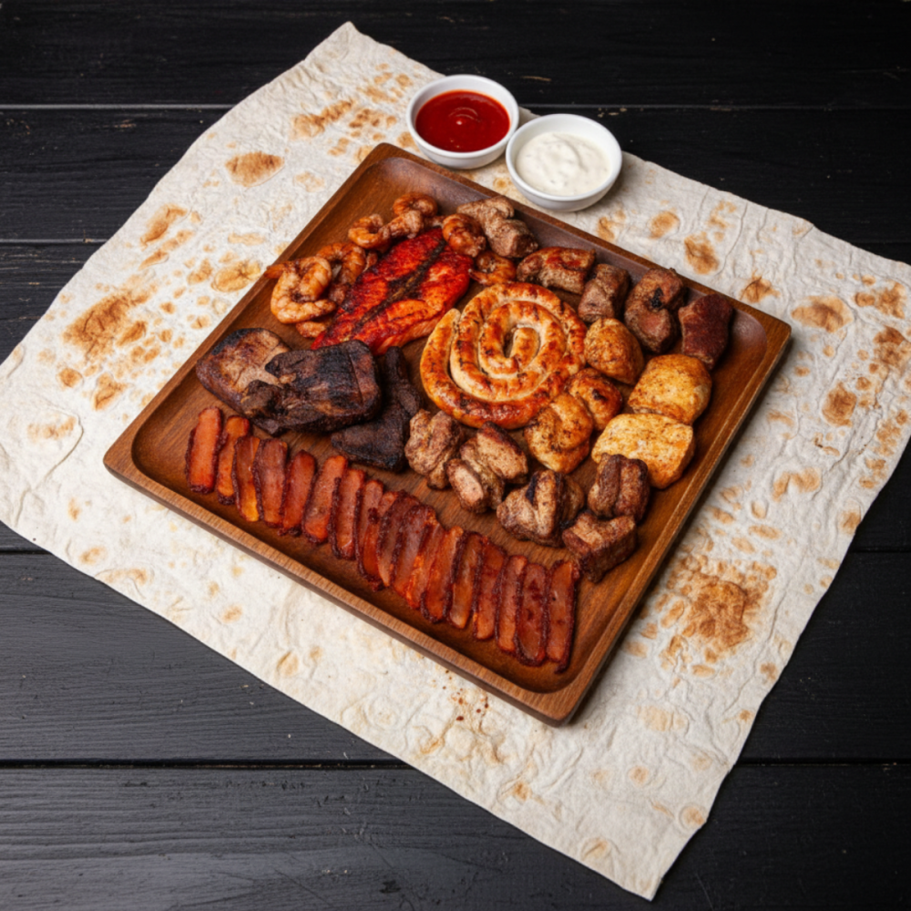 Язык говяжий, креветки, форель, шея, филе кур., грудинка , улитка кур.,бастурма